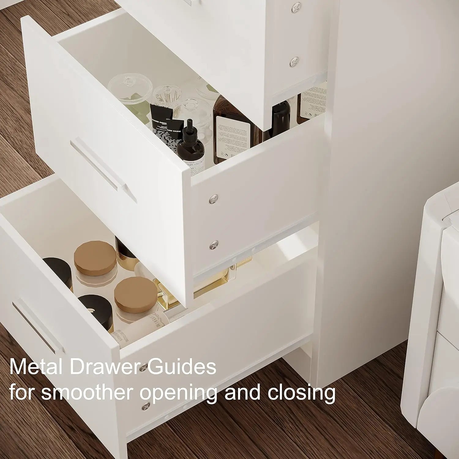 - Large Vanity Desk with Storage Shelf & 5 Drawers