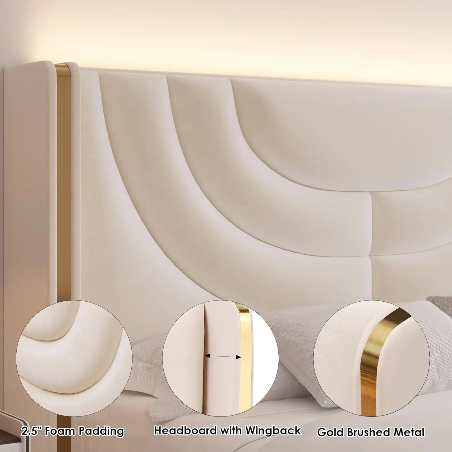 - Introducing the HITHOS Queen Upholstered LED Bed Frame with 2 Storage Drawers, a luxurious blend of comfort and functionality.