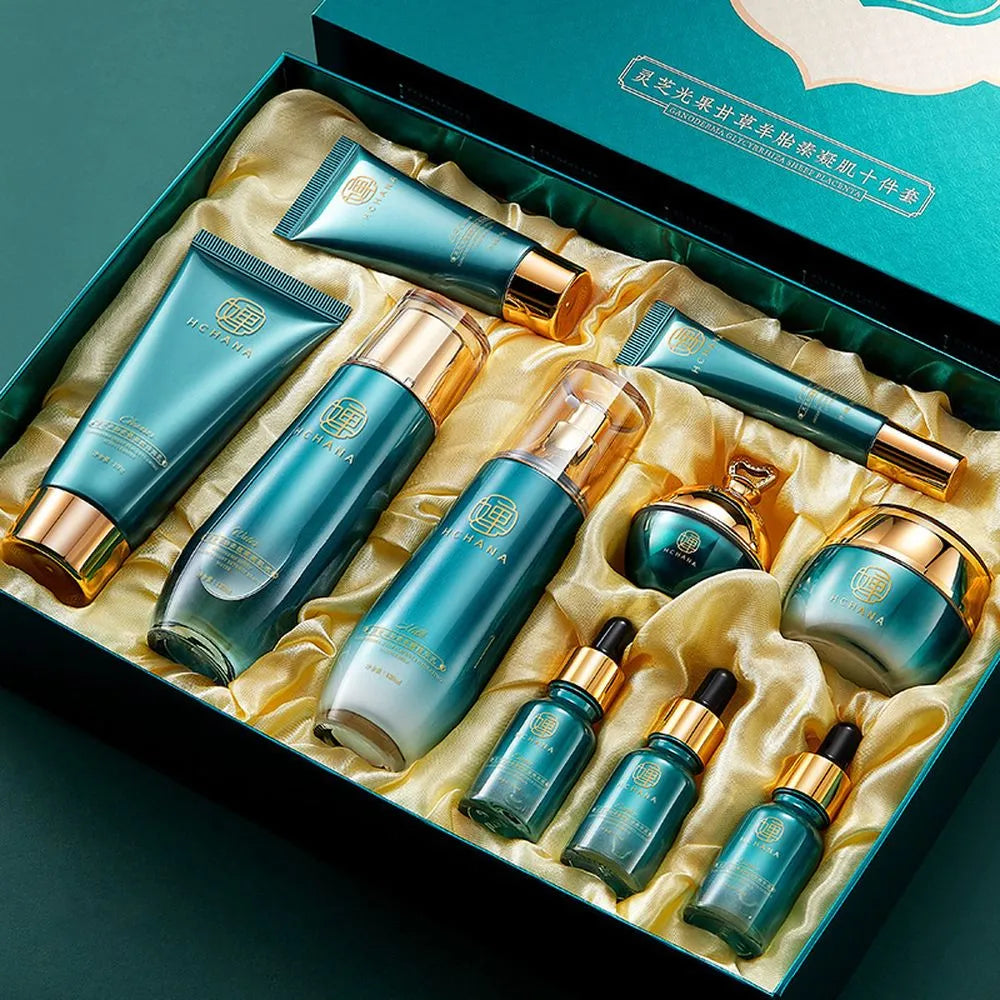 - LAIKOU Ganoderma Lucidum 10PCS Face Skin Care Product Set is a comprehensive skincare solution infused with the power of Ganoderma Lucidum, also known as Reishi Mushroom.
