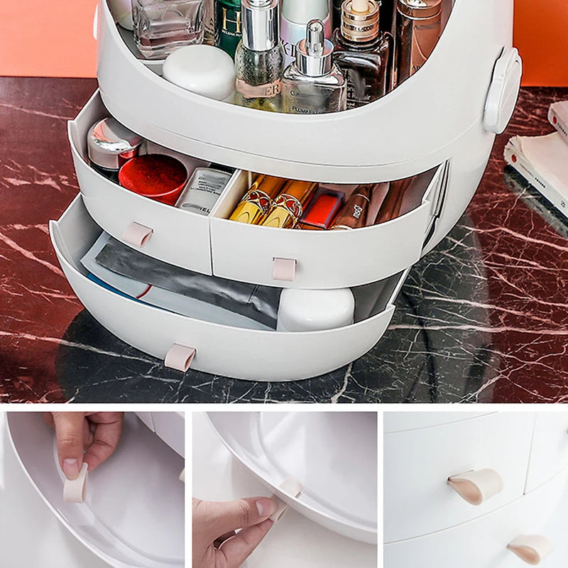 - Large capacity cosmetic storage box: This organizer provides ample space to accommodate various cosmetic items, ensuring they're neatly organized and easily accessible.
